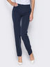 Классические однотонные брюки. В боковых швах вместительные карманы, сзади карманы-обманки. Застегивается изделие на молнию и 2 пуговицы.