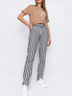 Легкие брюки из льна в полоску. Изделие с эластичной деталью по талии, для удобства дополнено кулиской.