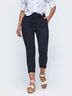 Укороченные брюки с эластичной деталью в поясе и кулиской. Модель дополнена вместительными карманами по бокам.