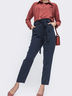 Стильные брюки с высокой посадкой из костюмной ткани. Модель с эластичной деталью в поясе и накладными карманами по бокам.
