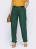 Льняные брюки с эластичной деталью по линии талии. Для удобства в носке предусмотрены по бокам карманы.