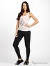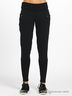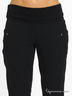 Спортивные зауженные трикотажные брюки. Спереди большие комбинированные накладные карманы на заклепках, сзади карманы на молнии. Голень-резинка. Посадка высокая. На талии - широкая трикотажная резинка.