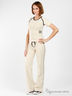 Спортивные брюки широкого кроя. Выполнены из эластичного хб материала. Отрезной пояс на веревочке. По бокам контрастные лампасы.