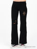 Оригинальные брюки прямого кроя. Выполнены из эластичного материала. Отрезной пояс на резинке. Модель украшена декоративными разрезами.