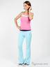 Стильные спортивные брюки расклешенного кроя. Выполнены из эластичного хб материала с перфорацией. Отрезной пояс-резинка. Сзади накладной кармашек.