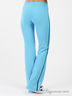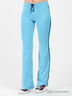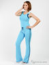 Спортивные эластичные брюки расклешенного кроя. Отрезной пояс на кулиске и веревочке. Модель украшена контрастными вставками и принтом.