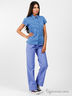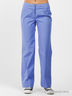 Детали: отрезной пояс без шлевков для ремня, застежка на крючки, пуговицу и молнию, один прорезной карман в рамках с пуговицей сзади, прямые свободные брючины, стильный принт узкая полоска.