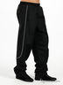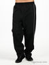 Детали: отрезной пояс на резинке, спереди 2 прорезных кармана на молнии, низ брючин застегивается на молнию