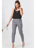 • Особенности: Брюки полуприлегающего силуэта из костюмной ткани в полоску. Детали: притачной пояс с резинкой в боковых вставках, защипы, зауженный книзу силуэт.