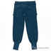 Детали: в трикотажный пояс вставлен регулирующий шнурок, оборка под поясом, два передних кармана, один карман украшен тканевыми цветами, брючины посажены на широкие трикотажные манжеты