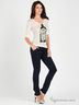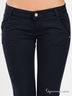 Детали: втачной пояс и шлевки для ремня, застежка на молнии и на пуговице, два прорезных кармана брючного пошива, два прорезных кармана сзади с небольшой металлической вставкой, брючины заужены к низу.
