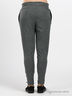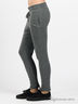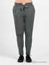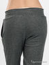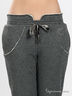 Трикотажные брюки свободного покроя цвета темно-серый меланж. Верх изделия посажен на кулиску с атласными завязками. Два больших прорезных кармана. Брючины с манжетами. Декорированы стразами.