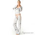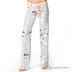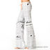 Трикотажные Брюки с газетным принтом. Пояс брюк декорирован атласной лентой .