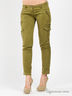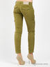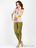 Модные брюки из плотного, мягкого материала. Отрезной пояс со шлевками для ремня. Застежка на пуговицу и молнию. Спереди два прорезных кармана на молнии, сзади два накладных с клапанами на кнопках, на брючинах три накладных с клапанами и один прорезной. Длинные зауженные брючины. Брюки декорированы контрастными мазками.