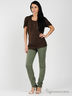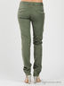 Детали: отрезной пояс со шлевками для ремня, застежка на пуговицы и молнию, два прорезных кармана спереди, два прорезных с клапанами сзади, зауженные к низу брючины.