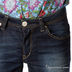 Окрас брюк темно-синий с эффектом затертости ткани и складок.