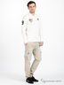 Детали: застежка на пуговицы, к поясу пришиты шлевки, два передних кармана, два задних кармана, два боковых кармана на брючинах