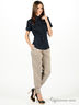 Детали: застежка на пуговицу и молнию, к поясу пришиты шлевки, два передних кармана, два задних кармана, брючины посажены на манжеты на пуговицах, декоративные сборки