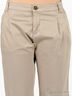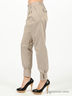 Детали: застежка на пуговицу и молнию, к поясу пришиты шлевки, два передних кармана, два задних кармана, брючины посажены на манжеты на пуговицах, декоративные сборки