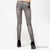 Брюки имеют классический пятикарманный крой. Ткань низкоэластичная, джинсовая. Застежка на пуговицу и молнию. Пояс дополнен шлевками для ремешка.