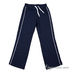 Классические темно-синие брюки для занятий спортом выполнены из футера (0гр) с контрастными белыми кантами по боковым швам и шнуром в поясе. Пояс регулируется резинкой.