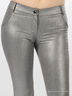 Детали: имитация карманов спереди; сзади два накладных кармана; отрезной пояс; застегиваются на молнию и пуговицу; низ штанин дополнен молниями