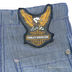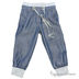 Оригинальные брюки из тонкого хлопка расцветкой под джинс, с прорезными карманами по бокам и накладными карманами сзади на эластичном поясе с кулиской.