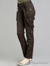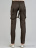 Повседневные брюки слегка зауженного кроя. Отрезной пояс со шлевками, застегиваются на молнию, по бокам накладные кармана на молнии, в комплекте съемные подтяжки.
