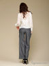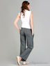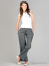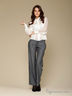 Классические брюки слегка расклешенного кроя. Отрезной пояс, застегивается на крючки и затягивается на шнуровку. Спереди 2 втачных кармана. Сзади прорезной карман, украшены кнопками.