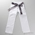 Брюки прямого кроя. В комплекте контрастный атласный пояс.