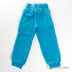 Брюки прямого кроя для девочки, посаженные на трикотажные манжеты. На поясе широкая трикотажная резинка с вшитыми внутрь завязками ярко-зеленого цвета. Два передних кармана.
