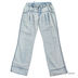 Расклешенные брюки из тонкой джинсовой ткани. Пояс на резинке, два прорезных кармашка, отложной низ брючин.
