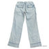 Расклешенные брюки из тонкой джинсовой ткани. Пояс на резинке, два прорезных кармашка, отложной низ брючин.