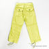 Модель прямого кроя застегивается на крючок и молнию. К поясу пришиты петли для ремня. Два передних кармана, два задних кармана на кнопке. Сзади, вертикально, в нижнюю часть брюк вставлен шнурок, утягивающий брючины по длине.