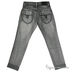 Джинсовые брюки застегиваются на пуговицы и молнию. Передние и задние карманы. К поясу пришиты шлевки. Эффект потертости.