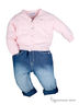 Стильные замины, потертости, контрастная двойная строчка - в этих джинсах все по-настоящему. Единственное отличие от взрослой модели - конструкция джинсов подразумевает использование подгузника. Орнаментальная цветочная ткань, используемая на пятом кармашке, внутренней части пояса и отворотах делает джинсы нежными и привлекательными.