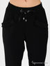 Детали: отрезной пояс в виде трикотажной резинки дополнен кулиской; два кармана спереди; сзади имитация карманов