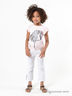 Великолепные брюки из эластичной ткани гарантирует комфорт и удобство при носки. Модель на эластичной резинке, спереди имеет два вшивных кармана, сзади – два накладных кармана. Низ изделия украшен нежным шитьем. Сзади на кармашке также украшение в виде шитья. В таких брючках юная модница будет неотразима!