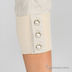 Зауженные брюки с широкими манжетами на трех пуговицах. На внешней стороне в районе колена ткань собрана на резинку. Имеются два кармана на пуговицах. Застегиваются брюки на оригинально вшитую молнию. Сзади на поясе пришита декоративная лента с яркими надписями.