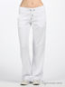 Спортивные велюровые брюки. Верх изделия посажен на широкую резинку с кулиской. Два прорезных кармана. По бокам брючин серебристые лампасы.