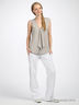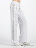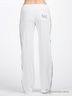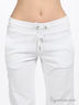 Спортивные велюровые брюки. Верх изделия посажен на широкую резинку с кулиской. Два прорезных кармана. По бокам брючин серебристые лампасы.