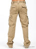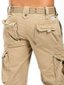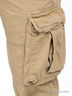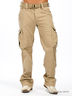 Модель прямого кроя застегивается на пуговицы. К поясу пришиты шлевки, вставлен тканевый ремень. Два передних кармана, два задних кармана на кнопке, два боковых кармана на брючинах на кнопках. Декоративная прострочка, эффект потертости.
