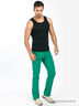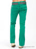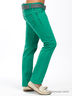 Модель прямого кроя застегивается на кнопку и молнию. К поясу пришиты шлевки. 4 втачных кармана, два спереди и 2 сзади.