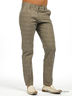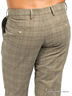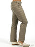 Модель прямого кроя застегивается на крючок и молнию. К поясу пришиты шлевки. Два передних кармана, два задних кармана на пуговице.