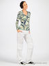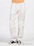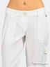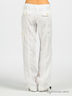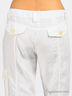 Льняные брюки прямого покроя. Отрезной пояс. Широкие шлевки для ремня. Застегиваются на молнию и пуговицу. Спереди два накладных кармана, сбоку один накладной с клапаном на пуговицах, сзади имитация карманов. Низ брючин посажен на кулиску.