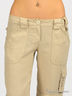 Льняные брюки прямого покроя. Отрезной пояс. Широкие шлевки для ремня. Застегиваются на молнию и пуговицу. Спереди два накладных кармана, сбоку один накладной с клапаном на пуговицах, сзади имитация карманов. Низ брючин посажен на кулиску.
