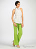 Льняные брюки прямого покроя. Широкий отрезной пояс. Застегиваются на молнию и три пуговицы. Два прорезных кармана спереди.