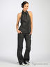 Льняные брюки прямого покроя. Отрезной пояс. Широкие шлевки для ремня. Застегиваются на молнию и пуговицу. Спереди два накладных кармана, сбоку один накладной с клапаном на пуговицах, сзади имитация карманов. Низ брючин посажен на кулиску.