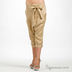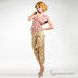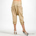 Женские брюки-афгани укороченные. Широкий пояс-кокетка со шлевками для декоративного ремешка. Застежка на молнии и пуговицах. Два кармана спереди. Сзади имитация карманов с клапанами. Манжеты брюк на пуговицах с возможностью регулировать ширину. Спереди изделия декоративные простроченные складки.