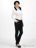 Детали: к поясу пришиты шлевки, вставлен поясок; застежка на молнию, крючок и пуговицу; два передних кармана, складки от пояса